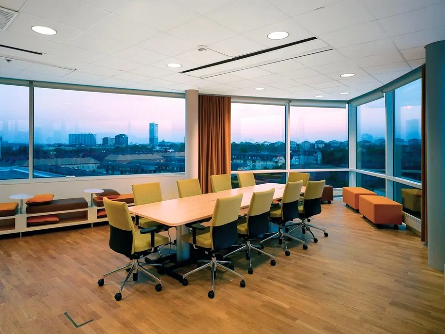 Ecophon Focus™ B limmas kant i kant direkt på innertaket, vilket ger ett tak med ett slätt utseende. De fasade kanterna skapar ett diskret spår mellan absorbenterna. För applikationer där det krävs ett system med minsta möjliga totala konstruktionshöjd.